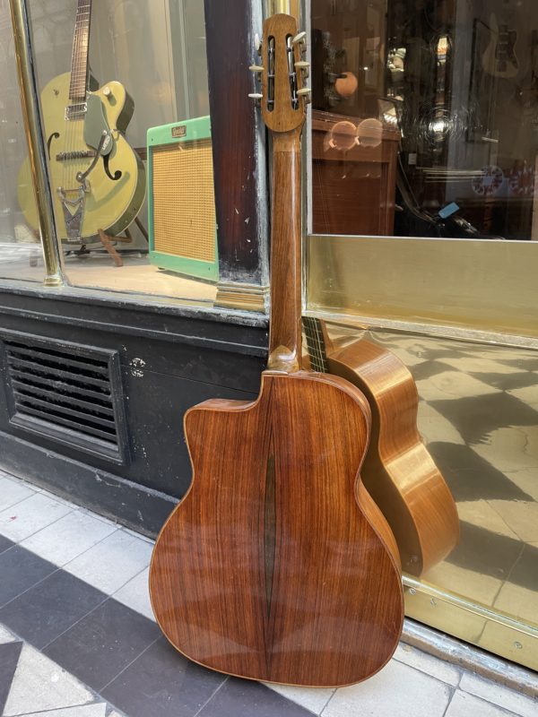 Voici un superbe exemplaire qui a appartenu et été joué par nul autre que le musicien Thomas Dutronc, dont l’apport à la continuité de l’héritage musical de Django au XXIe siècle n’est pas des moindres, par delà son concours à la variété française actuelle. Par ailleurs, l’instrument est celui que l’on retrouve en couverture de l’ouvrage L’Histoire de guitares Selmer-Maccaferri qui, jusqu’à ce jour, fait référence en matière de guitares Selmer, et tous ceux qui conservent précieusement sur leur table de chevet auront sans doute reconnu au premier clin d’oeil la #807 – un exemplaire est d’ailleurs inclus avec la guitare.