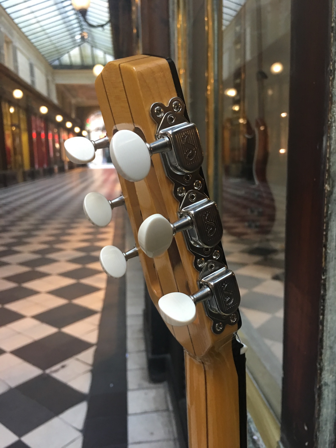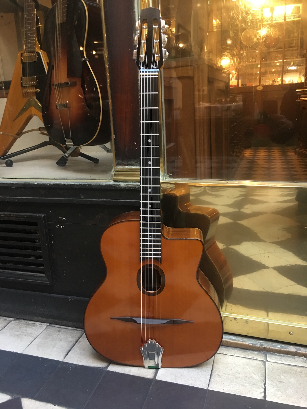 Jolie guitare de la Company Stringphonic en copie d’une guitare de Jacques Favino.