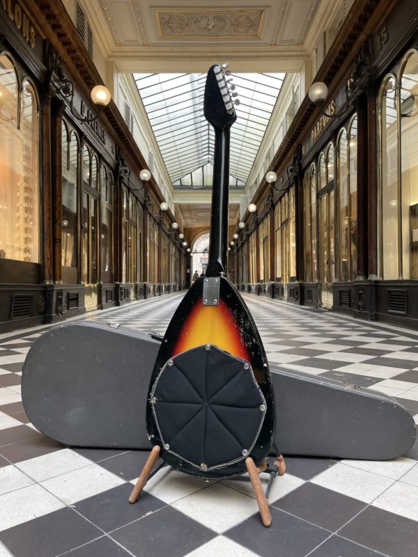 Son fondateur, un certain Brian Jones, apparait à l’époque au bras d’une guitare guttiforme à l’aspect bien moderniste dans un univers organologique contemporain composé de guitares solidibody ou hollowbody électriques d’origine allemande ou américaine aux formes établies et convenues depuis la décennie précédente. Affublée d’un dénominatif qui n’est pas sans rappeler la nomenclature rigoureuse des avions militaires britanniques, la Vox Mark VI fait son apparition en 1964, dans la lignée directe de la version Mark III du modèle Phantom, guitare solidbody originale du fabricant britannique, et rencontre immédiatement un succès éclatant puisqu’elle trouve un chantre très en vue en la personne du guitariste des Stones.